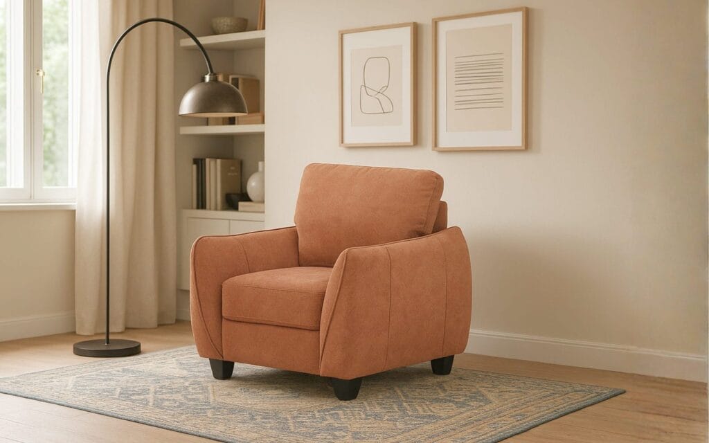 Elevate your home aesthetic with the timeless elegance of the Ishwar Interior Austin American Fabric Sofa Single Seater.