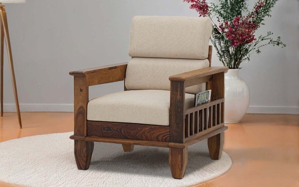 Elevate your living space with the Ishwar Interior Chola Sheesham Wood Single Seater Sofa, a perfect blend of style and comfort. Crafted from durable Sheesham wood, known for its strength and rich grain, this sofa adds an elegant touch to any room. The included beige moulded foam cushion ensures you enjoy long hours of relaxation without compromising on support. Its compact design makes it ideal for smaller spaces while remaining a stunning statement piece.