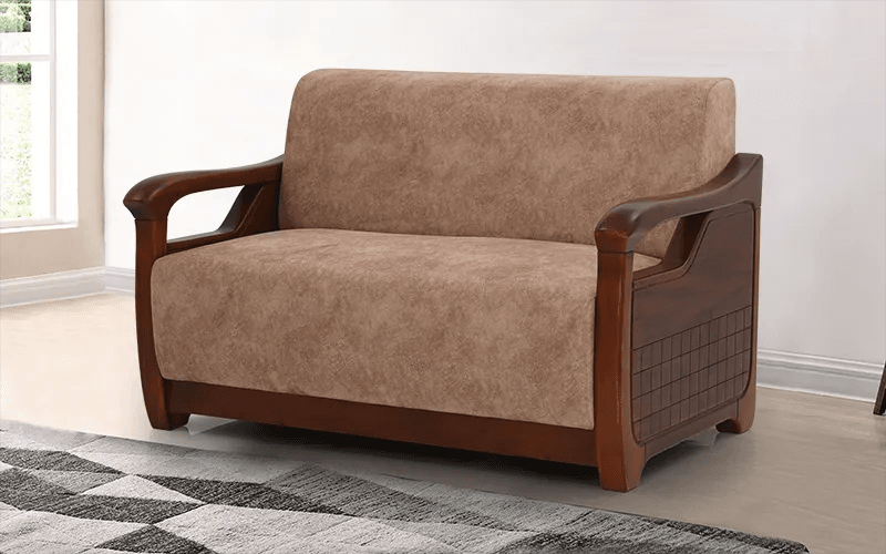 Introducing the Ishwar Interior Raiden Wooden Sofa, a stunning two-seater that seamlessly marries style with comfort. Crafted with high-quality solid wood, this sofa boasts a sleek design that enhances any living space. Its fine upholstery features an intricate stitching pattern, ensuring durability and aesthetic appeal. With a spacious seating area and optimal back support, it is designed for relaxation while fitting perfectly into compact areas or as an accent piece in larger rooms.